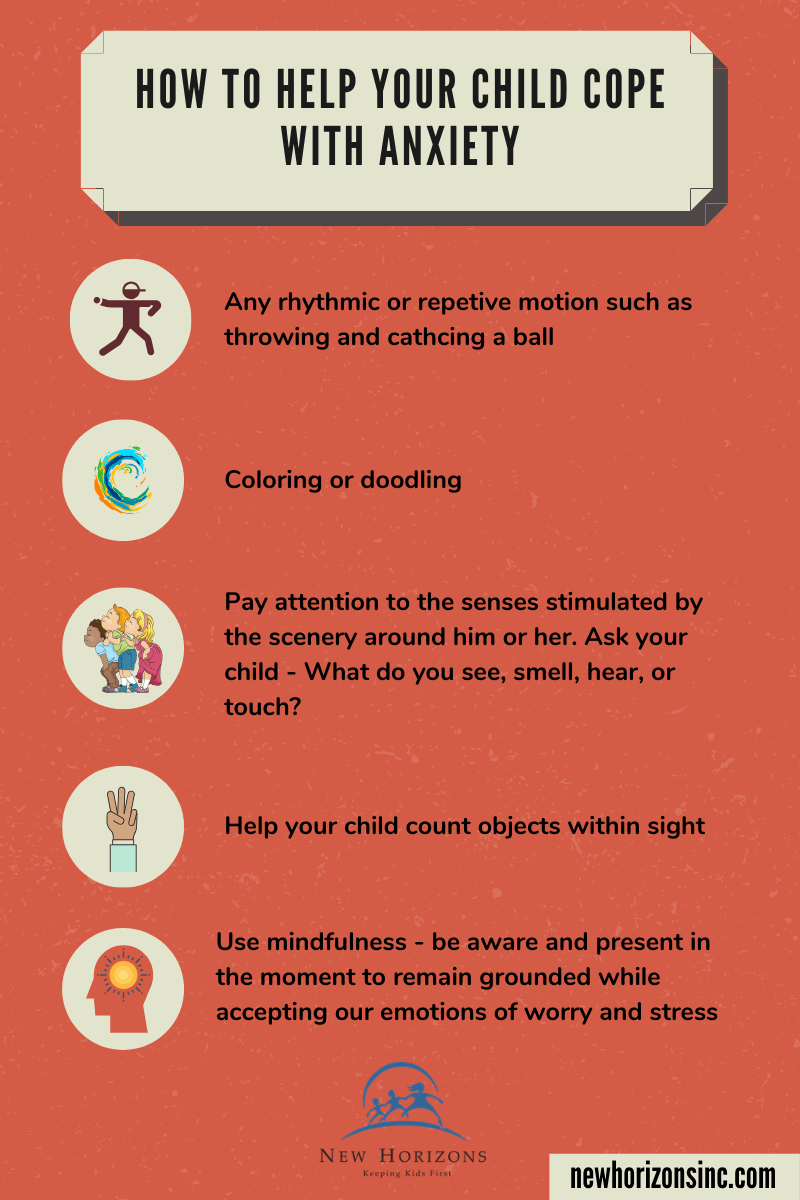 Help your child identify what best helps him or her recognize and cope with worries. Your calm response will further help your child learn how to overcome their anxiety.
